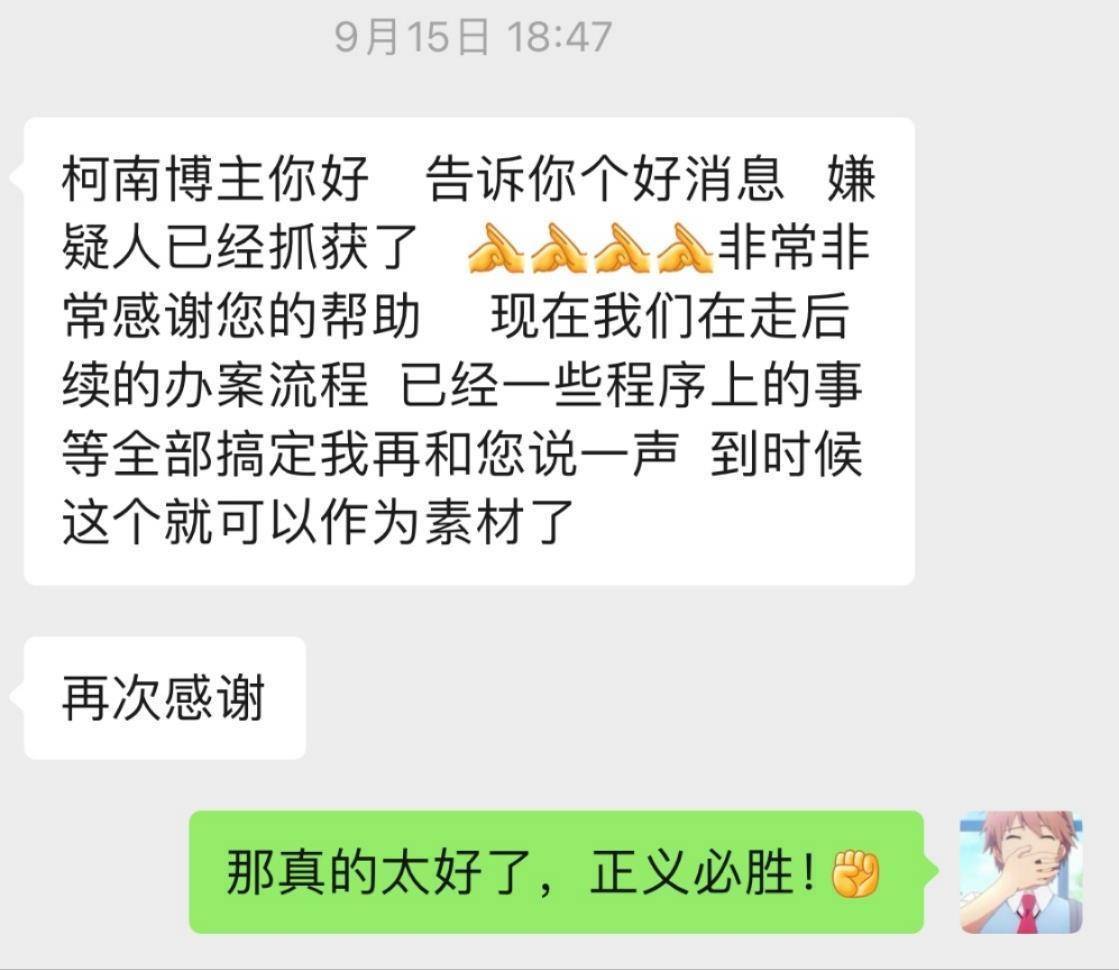 冯柯南:我协助警方追踪嫌疑人是意外收获,不能影响警方办案,帮倒忙。直到今年9月,胡警官才通知,嫌疑人已被抓获。确定嫌疑人被带回国归案后,我才考虑制作解析视频。