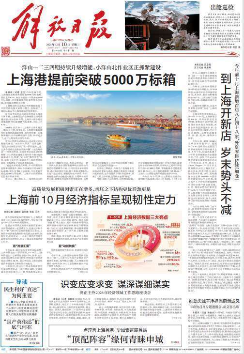 上周,中央经济工作会议重磅召开,明确提出建设上海(长三角)国际科技创新中心,深化拓展“人工智能+”,稳步推进制度型开放……上海市委常委会举行扩大会议,强调围绕中央经济工作会议精神当好“施工队长”,释放内需潜力,深入推进“五个中心”建设,深化高水平改革开放,扎实推进人民城市建设。面向“十五五”,随着上海系列重要项目的落地推进,多个领域“小老虎”的涌现,相信2026年的上海经济,会释放出更强动力、更强活力。